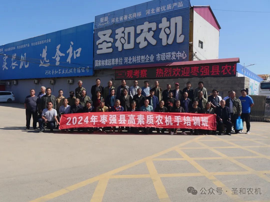 2024年9月22日,枣强县农业农村局2024年枣强县高素质农机手培训班到河北圣和农业机械有限公司参观学习。圣和公司董事长王新芳携公司各级领导热情接待。